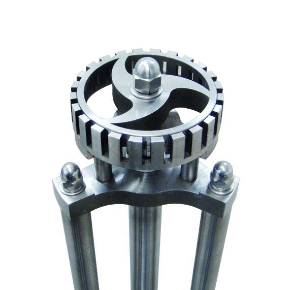 强劲的马达进行高速旋转使转、定子之间形成真空,物料从转、定子上部和底部吸入。